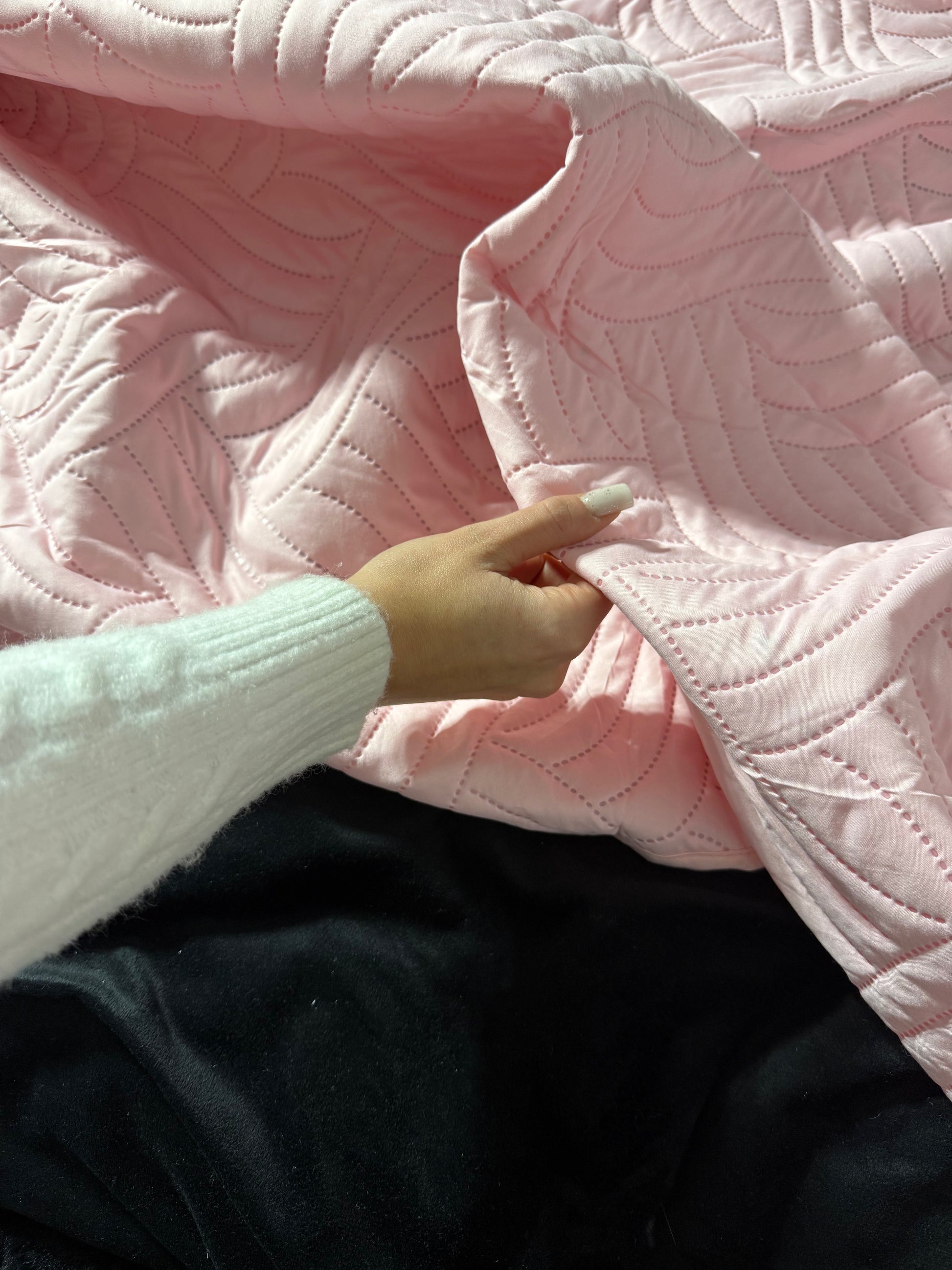 Elegancka Narzuta z Weluru 220×240 cm – Różowa, Pikowanie Jodełka
