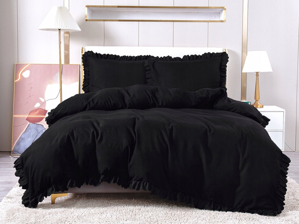 Pościel z mikrofibry czarna z falbanką 160x200 cm – elegancja i wygoda w Twojej sypialni